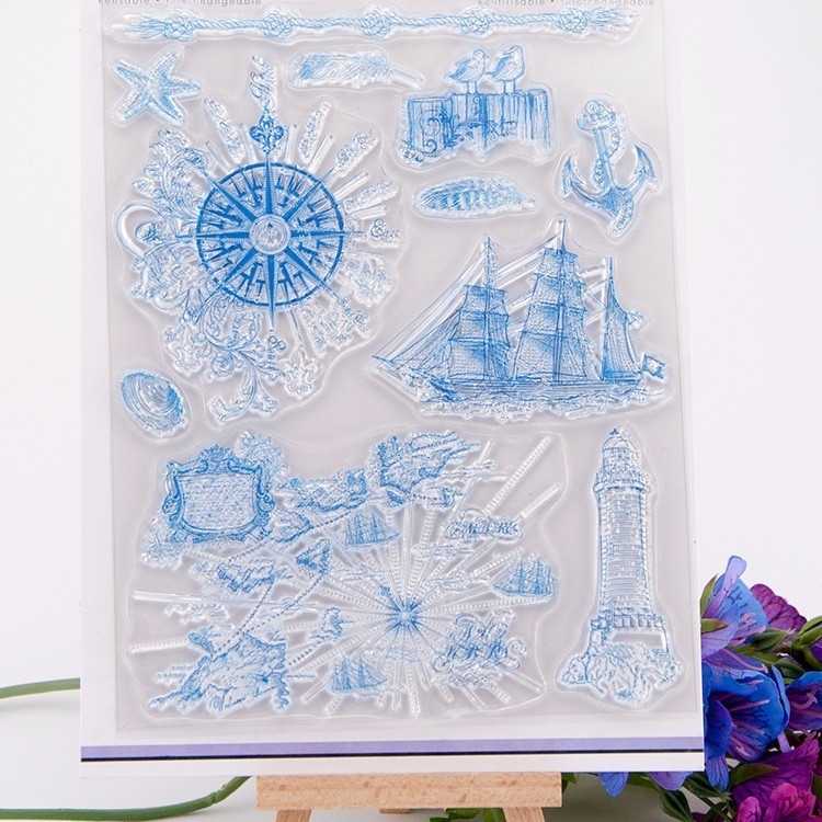 "Морские" штампы были одной из первых покупок - вместе со штемпельными подушечками, про которые я рассказывала в прошлый раз.)